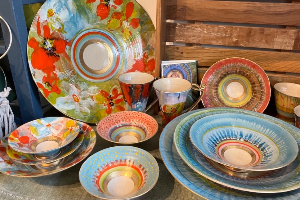 Es gibt hochwertige Küchenhelfer, schöne Geschirrtücher und Tischwäsche, Wolldecken, Kissen, Vasen, Kerzen und Gärtnerisches. Gewürze und vieles "von hier" runden das Sortiment ab.